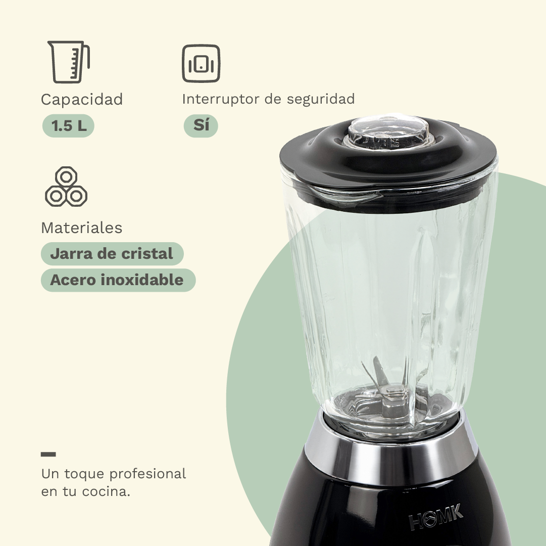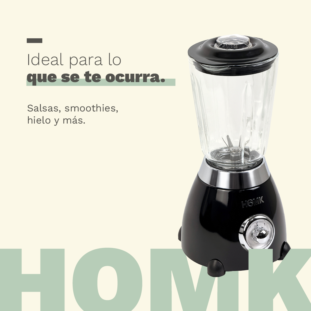 La licuadora HOMK Bansky Black combina rendimiento, seguridad y un diseño sofisticado que eleva cualquier cocina. Ideal para quienes valoran tanto la estética como la funcionalidad.