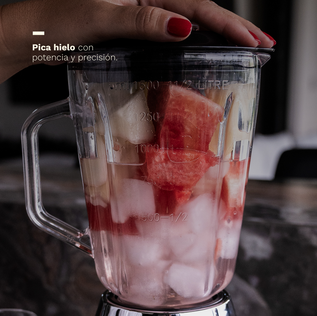 - Capacidad: 1.5 litros, perfecta para jugos, smoothies o preparaciones familiares.