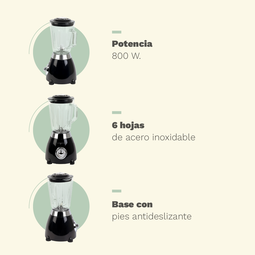 - Potencia de 800W: Mezclá y triturá sin esfuerzo frutas, vegetales y hielo.