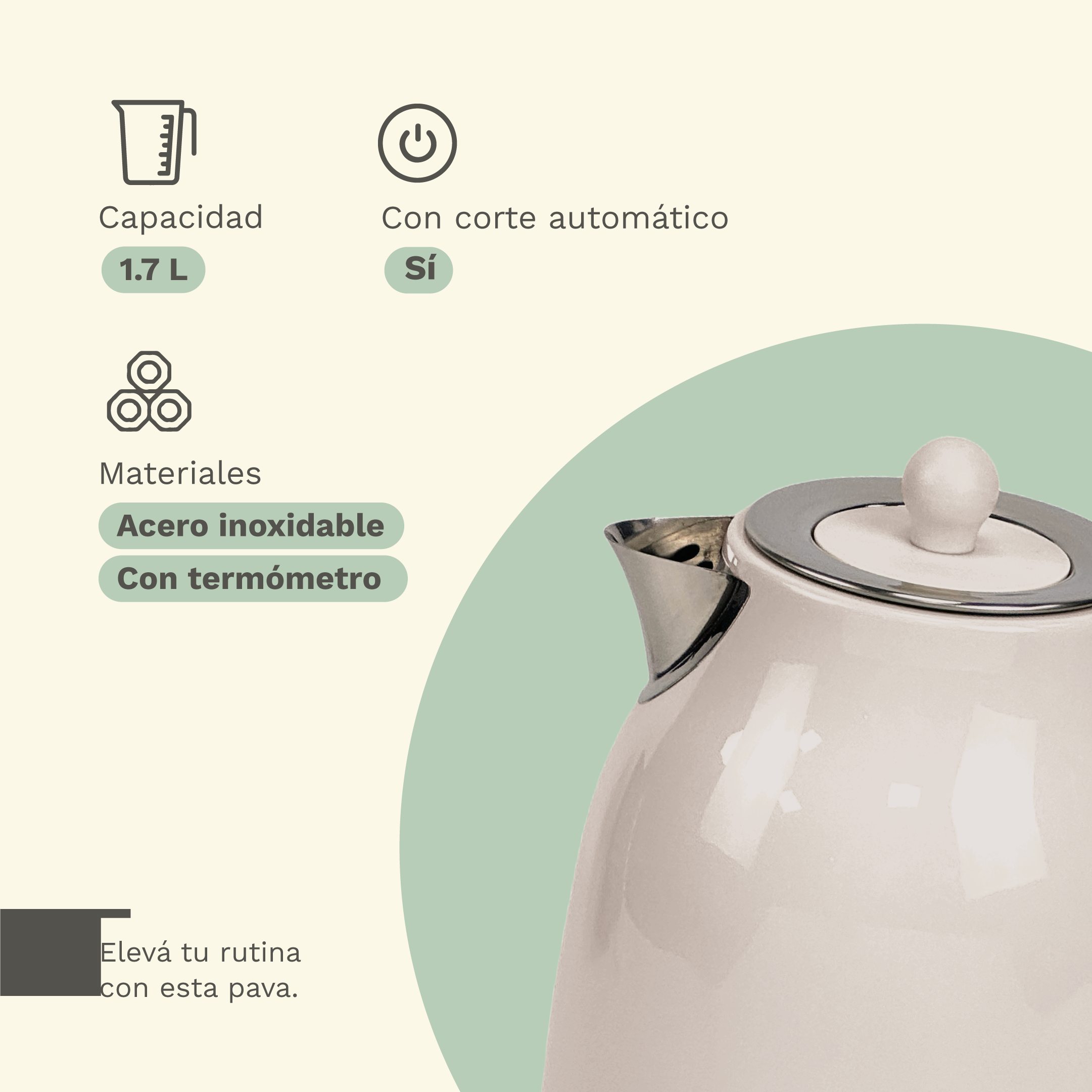 - Capacidad de 1.7 L: Ideal para toda la familia o para quienes disfrutan de varias infusiones al día.