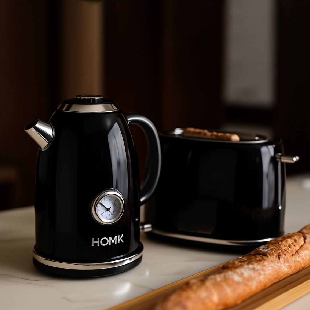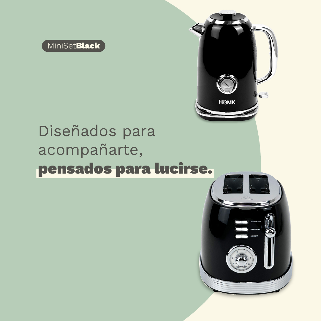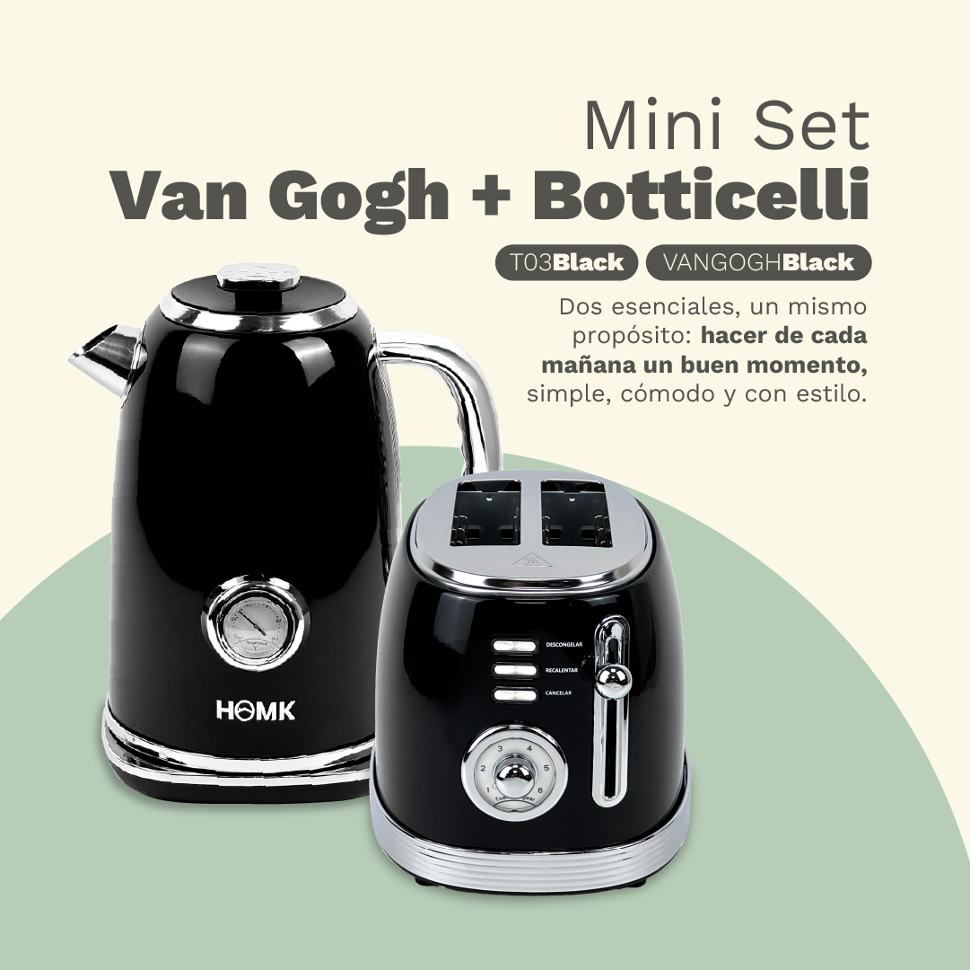 Redecorá tu cocina con el encanto del arte y la potencia de HOMK. El Set Tostadora Botticelli Black + Pava eléctrica Van Gogh Black reúne tres productos estrella: pava eléctrica y tostadora en color negro. Un combo pensado para quienes disfrutan del diseño tanto como de la practicidad.